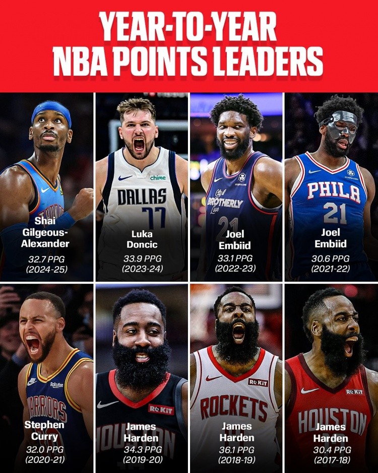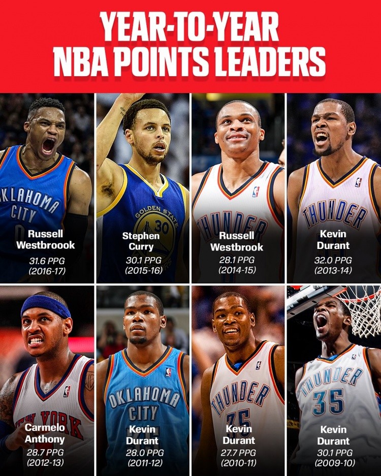 过去16个赛季得分王由8人包办!新赛季会有新得分王诞生吗?