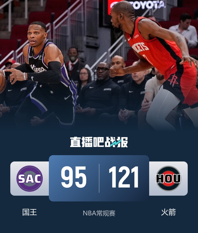 篮板62-32!火箭轻取国王 申京28+10 阿门20+12+7 杜兰特24+8
